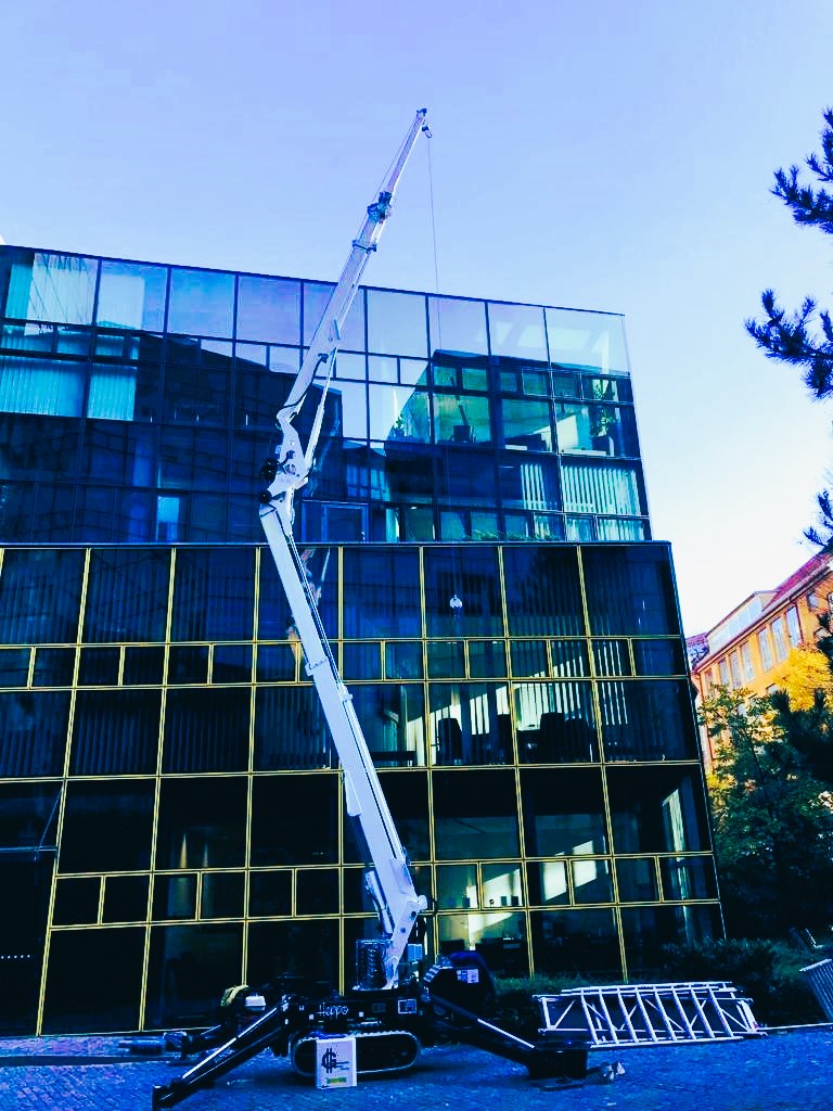 descriere-diagrama de ridicare foto - Our TGT RoboCrane 1400 is “two in one” Crane and glass manipulator. Equipped with a manipulator the TGT RoboCrane 1400 can rotate, tilt, move side-ways and telescope large and heavy glasses or elements to a height of nearly 10 m. The millimeter-accurate put in of elements and glasses is thereby effortlessly to do with the wireless remote.